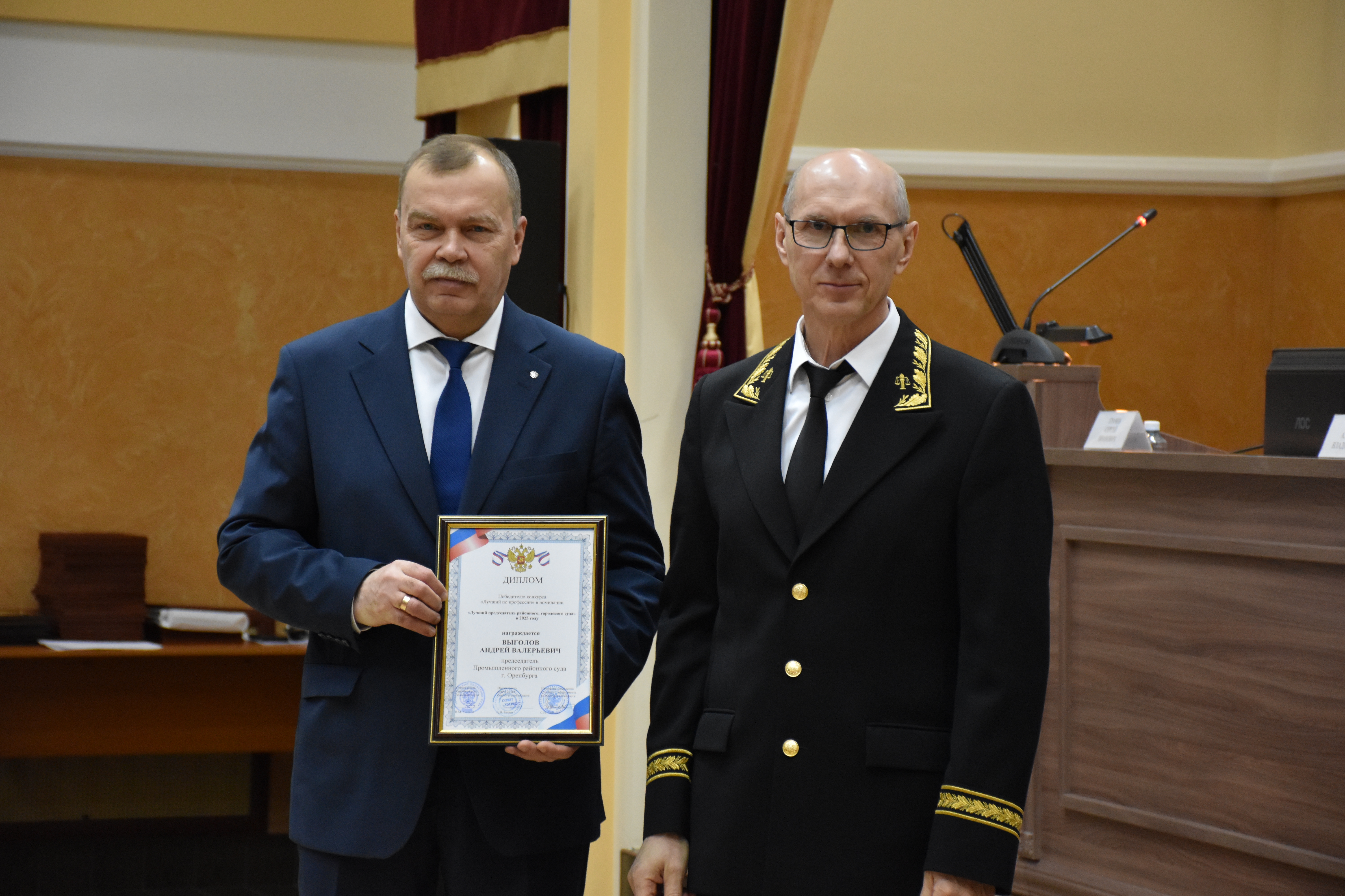 «Лучший председатель районного, городского суда» – Выголов Андрей Валерьевич – председатель Промышленного районного суда г. Оренбурга, – Турмухамбетов Мурат Турумрадович – председатель Саракташского районного суда Оренбургской области.